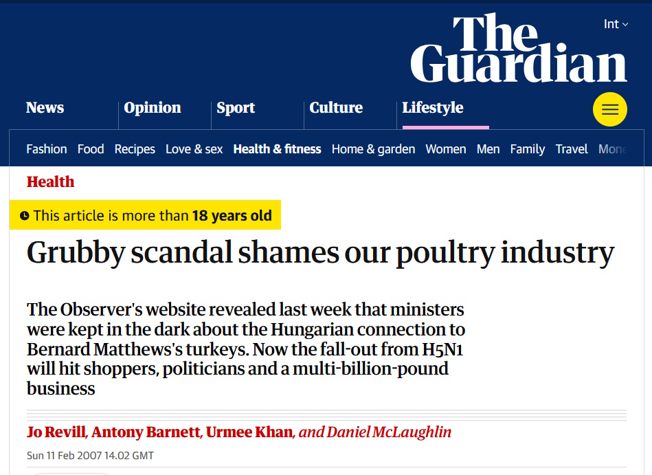 But both government vets and officials were profoundly aware that such information would take the trail away from the hypothesis of a wild bird flying in and spreading disease, and into the realm of the poultry food trade. The document that discussed the consignment of food from Hungary, and how it was handled, was marked 'commercial in confidence'. The protection of Britain's £3.4bn poultry industry appeared to be taking greater priority than the risk to human health." (1a)